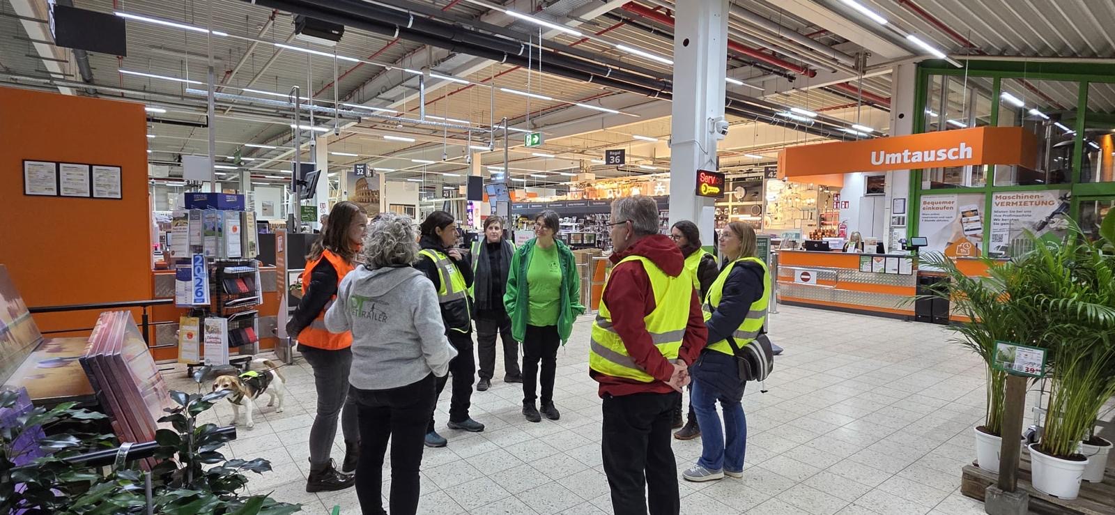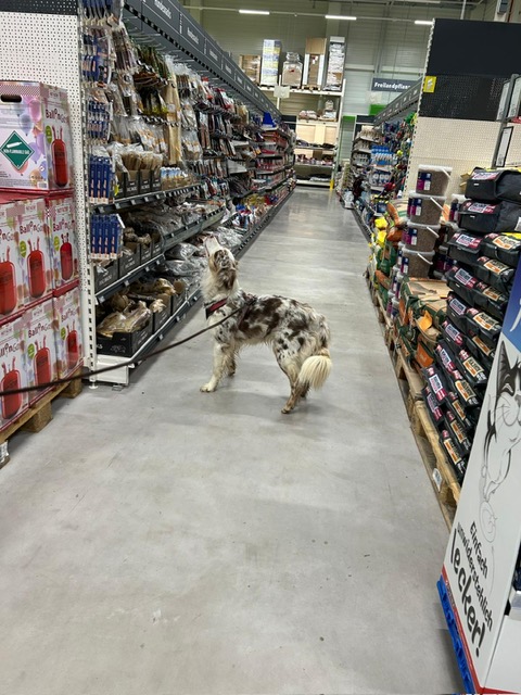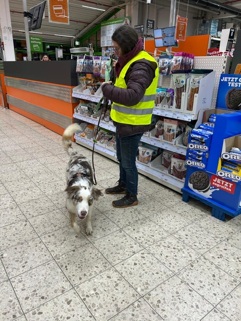 Für einige Hunde war es der allererste Indoor Trail im Globus Baumarkt in Rottenburg. Ganz schön aufregend, in den langen Gängen mit glattem Fußboden und vielen fremden Gerüchen nach der Versteckperson zu suchen. Vor allem, wenn sie hinter Türen, Paletten, Gabelstaplern, in Regalen oder Duschkabinen versteckt sind und auch noch Hundefutter auf Nasenhöhe ausliegt!